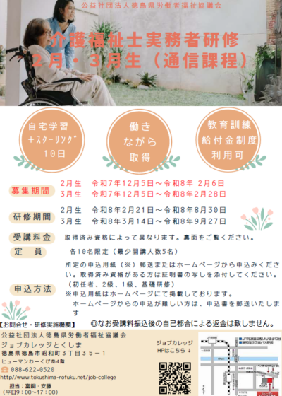 ◎ 【募集開始】 介護福祉士実務者研修(通信2・3月生)